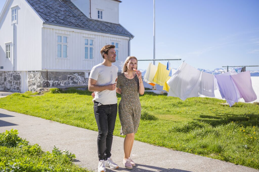A 250 meter walkway takes you to Tranøy lighthouse located in Hamarøy municipality. The lighthouse was built in 1864 and is today automated and in full operation. Our restaurant offers home-cooked food with the best ingredients from the area. The resort has up to 40 beds in 16 different rooms. At Tranøy Lighthouse you can either just BE, or you can take a guided tour in the lighthouse, fish from the rocks at the lighthouse, jump into the sea, watch the birds, take a picture of the laundry with the Lofoten mountainwall in the background, take a walk or ride a bike in our powerful nature. You are very welcome:)